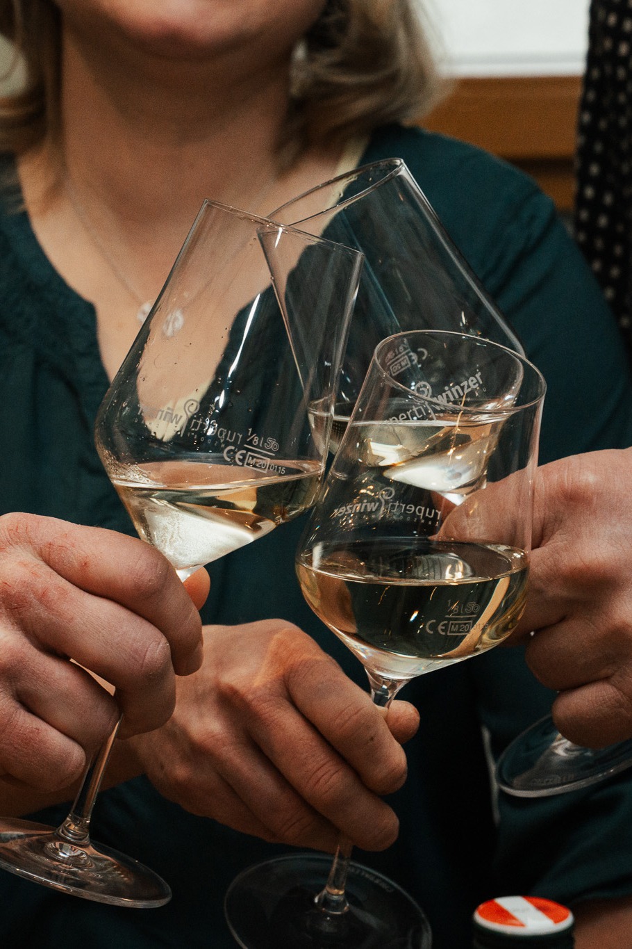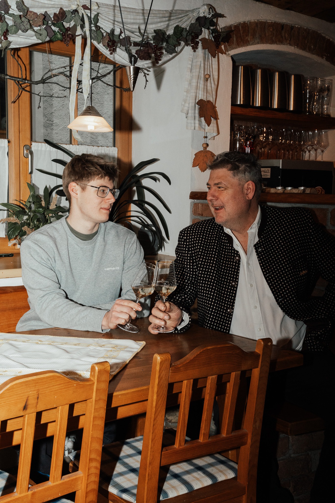 Für uns ist Wein kein stummes Produkt, sondern ein Gesprächsstoff. Ob bei einem geselligen Event, begleitet von Musik, oder bei einer fokussierten Verkostung in aller Stille – diese Momente des Austauschs sind unser Antrieb.